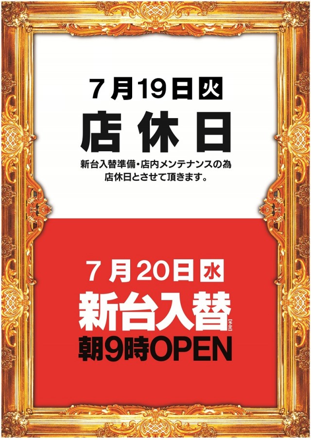 7月19日(火)新台入替の為お休みを頂きます。