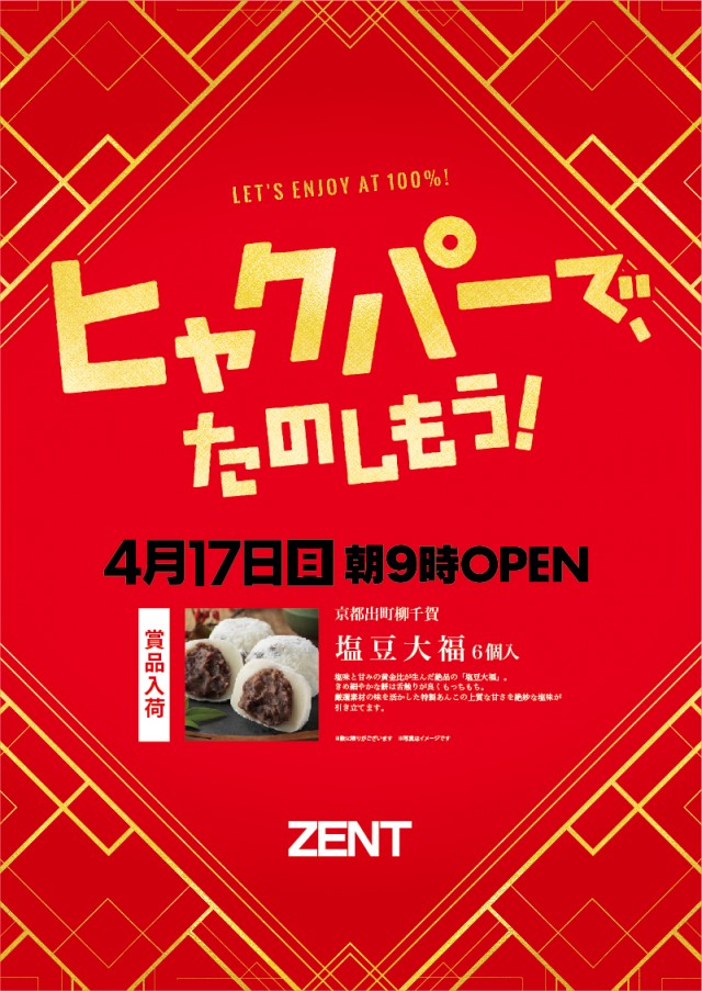「ZENT市ノ坪店」:4月15日(金)朝9時開店・賞品入荷!