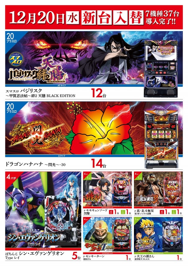 【ZENT市ノ坪店】12月20日(水)新台入替★朝9時開店★