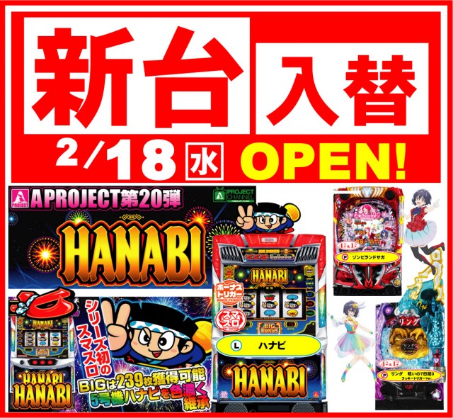 2/18≪水曜日≫ 「「 新台入替×OPEN!」]