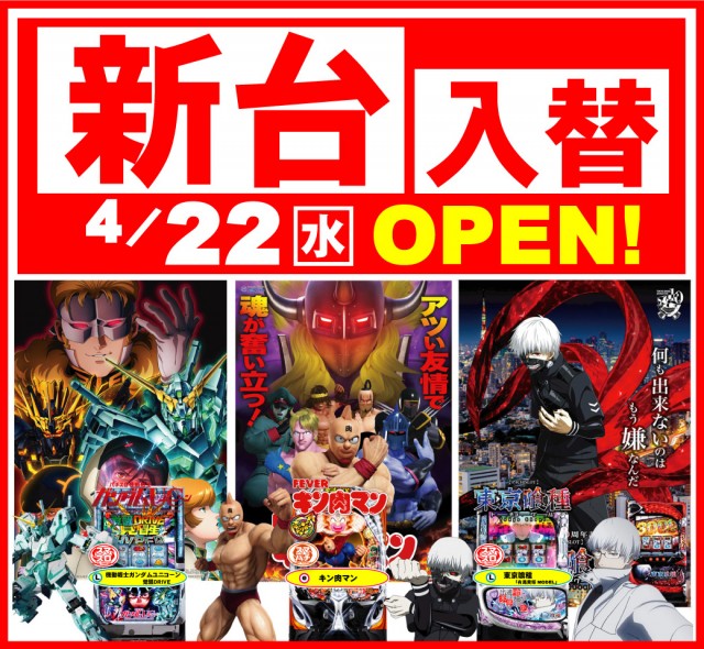 4/22≪水曜日≫「「新台入替 × OPEN!」」
