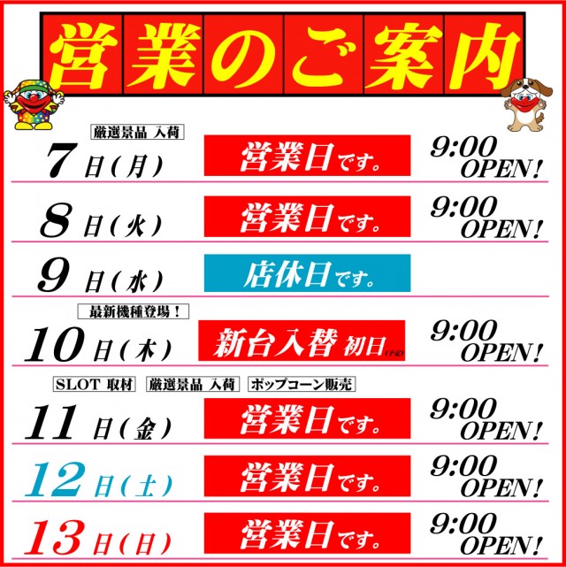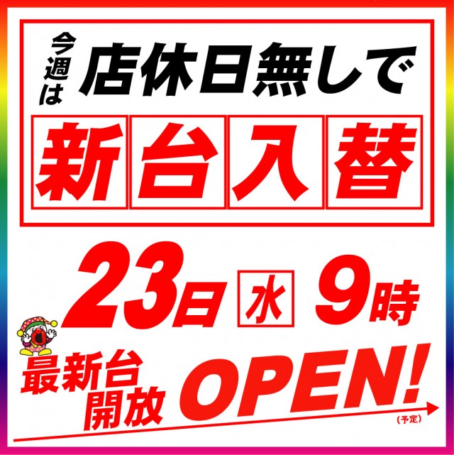 | 定休日 | 年中無休 (但し新台入替の前日はお休みします) |