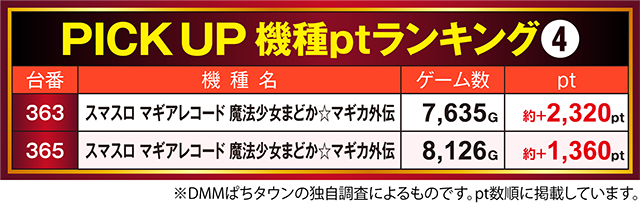 「スマスロ マギアレコード 魔法少女まどか☆マギカ外伝」の363番台と365番台も約+1,300ptを上回りました(^3^)