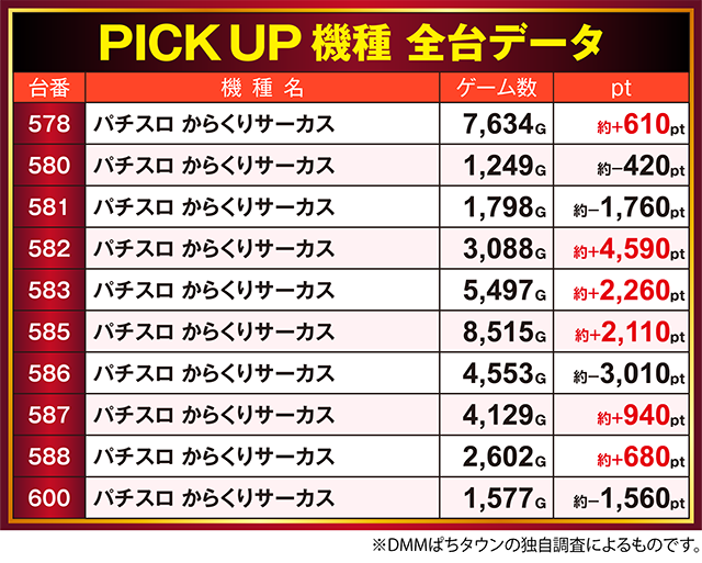 583番台と585番台も約+2,100pt超と、多くの台に活気がありました(^ω^)