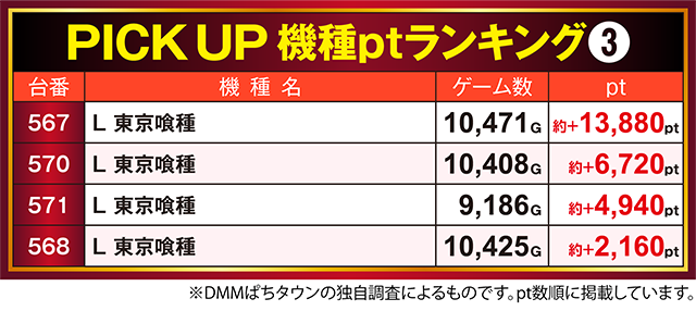 4台が約+2,100ptを超えた「L 東京喰種」では、567番台が約+13,000ptオーバー!!