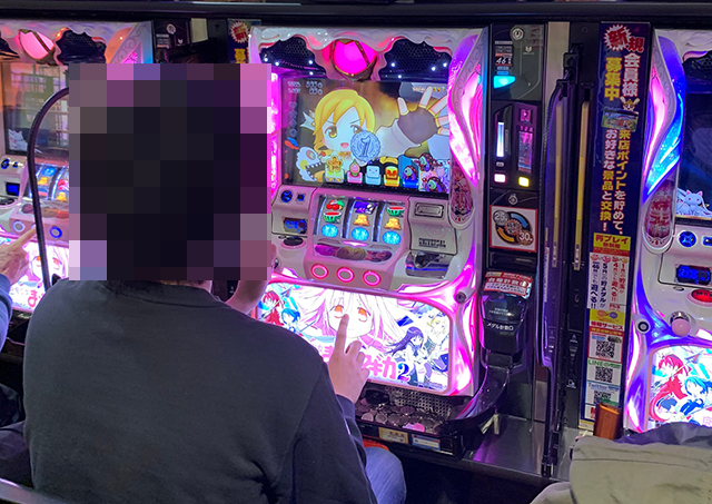はじめに注目をしたのは、稼働率の高さ。設置されている17台のうち7割以上が埋まっており、イキイキとレバーを叩く姿がズラリと並んでいた。