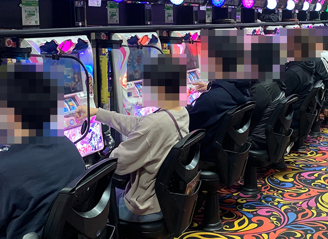 さまざまな機種が支持されているホール内では、パチスロの盛り上がりがとくに大きかった。