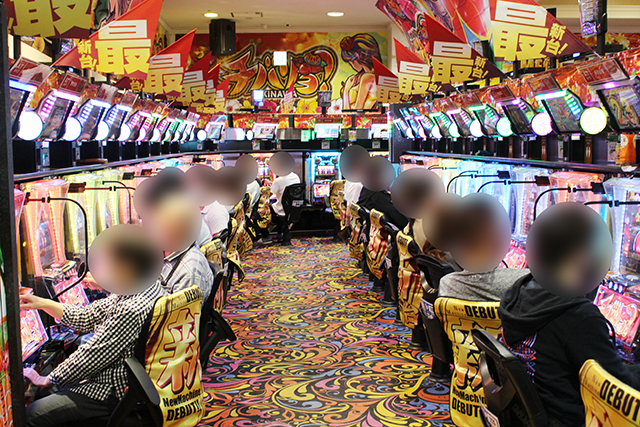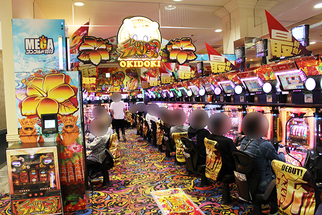驚異的な人気を見せる最新台は、老若男女問わず多くのプレイヤーが遊技する抜群の稼働! 大量導入は自信の表れなのか、多くのプレイヤーが満足できる状況が広がっていた!