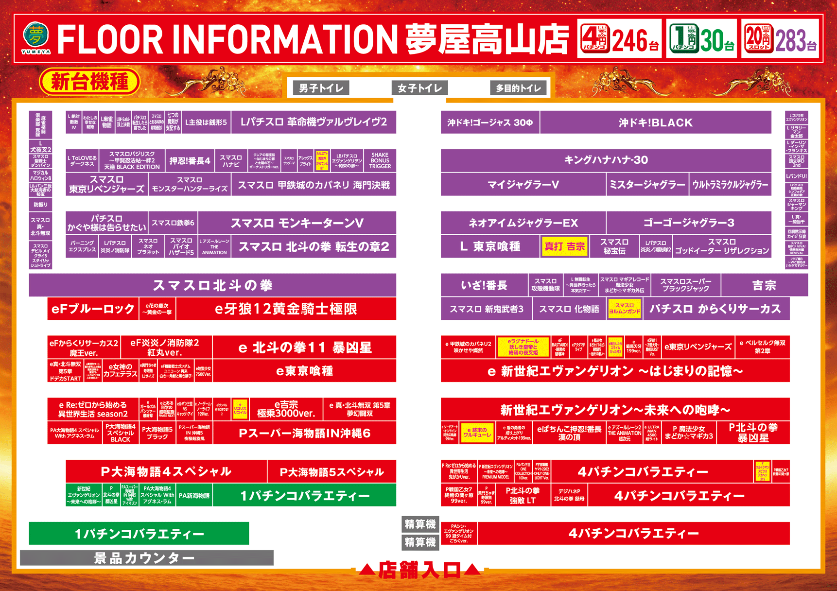 夢屋高山店の機種情報