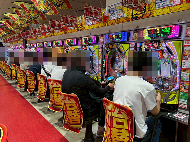 満席となっており、プレイヤーは晴れやかな表情で遊技をおこなっていた。