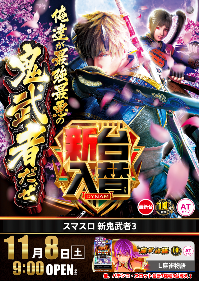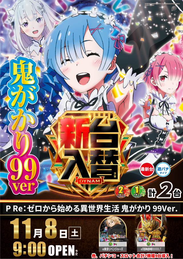 11/8(土)新台入替 パチンコ・スロット合計9台導入