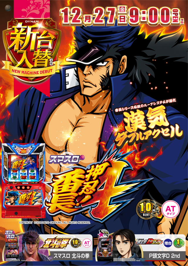 本日12/27(金)L北斗の拳、押忍!番長4他、全3機種導入