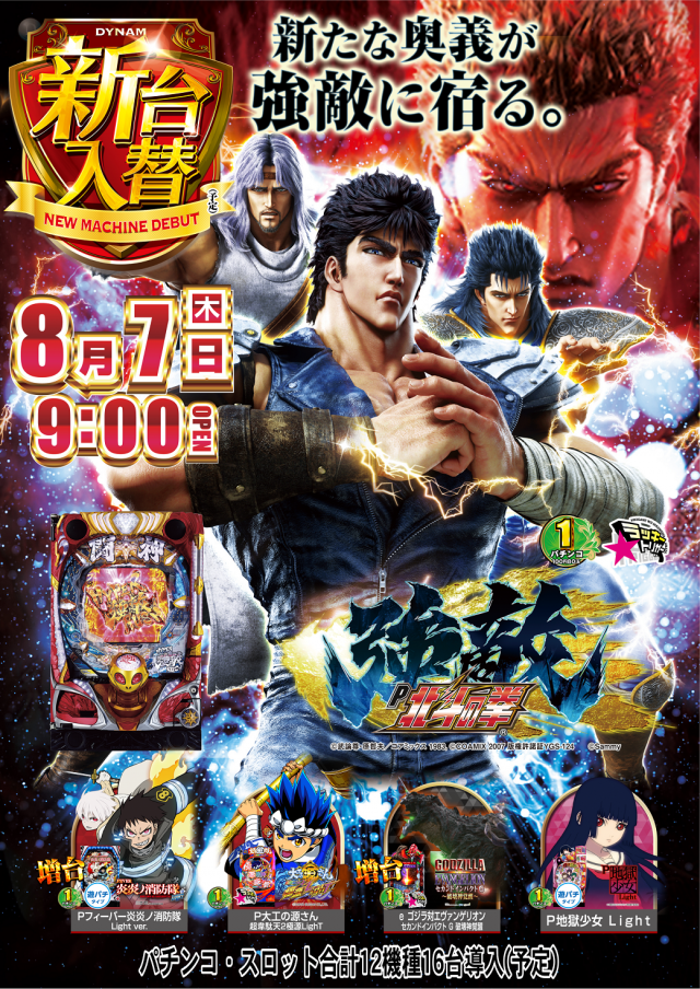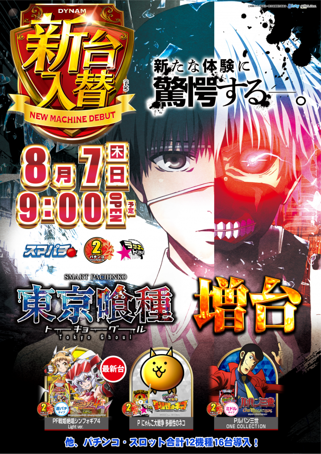 8/7(木)新台入替 パチンコ・スロット合計16台導入