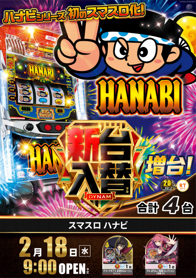 2/18(水)新台入替 パチンコ・スロット合計4台導入