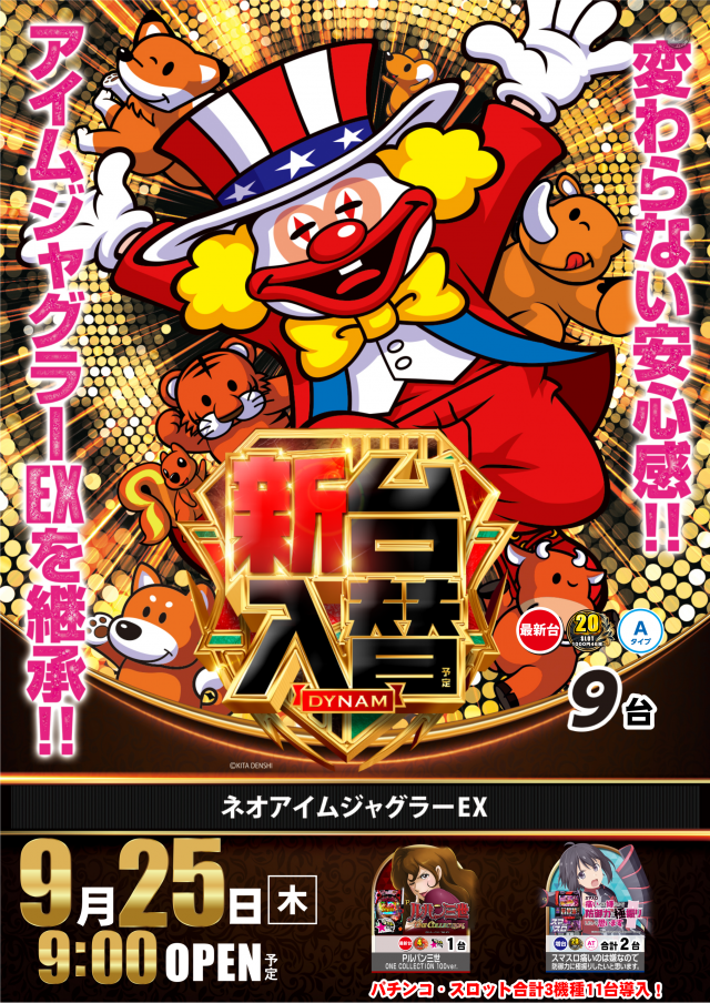 9/25(木)新台入替 パチンコ・スロット合計11台導入