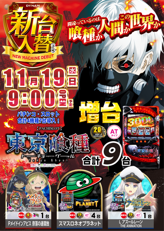 11/19(水)新台入替 パチンコ・スロット合計7台導入