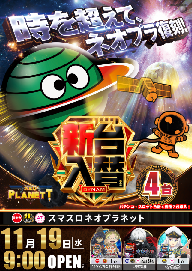11/25(火)ダイナムグループ2店舗 9:30開店予定