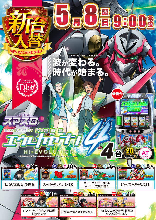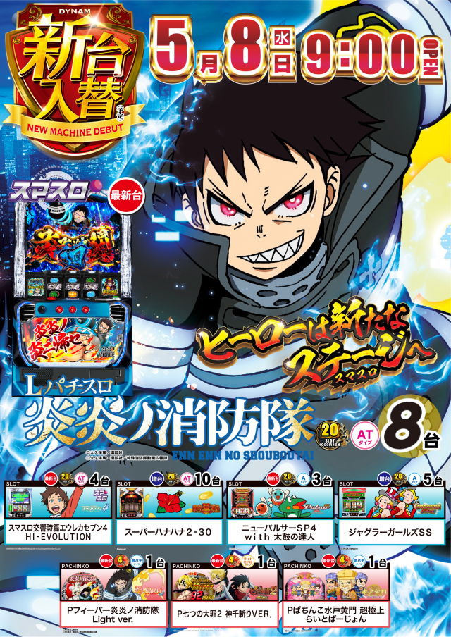 明日5/8(水)「L炎炎」「Lエウレカ4」他、全8機種導入!