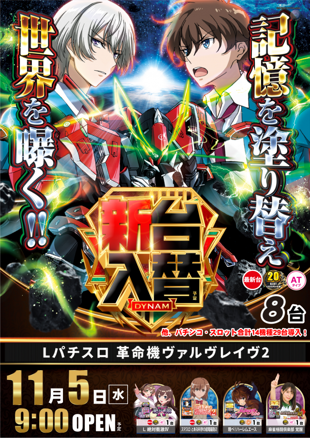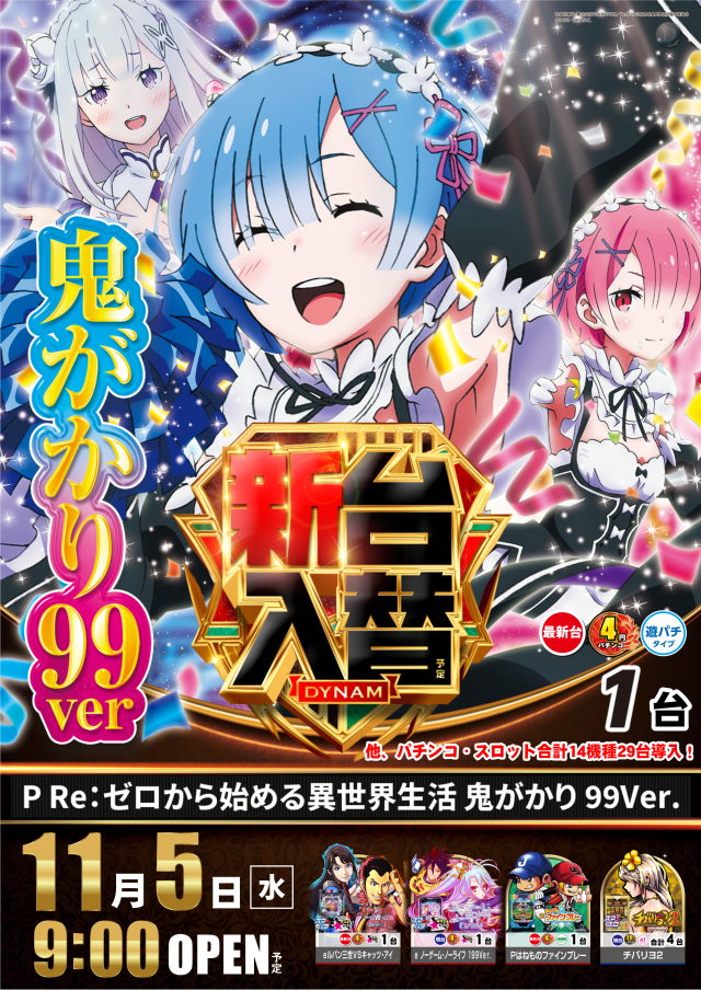 11/5(水)新台入替 パチンコ・スロット合計29台導入