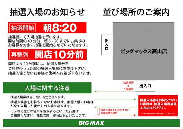 本日笑顔向上プロジェクト朝9時30分開店 抽選入場のご案内