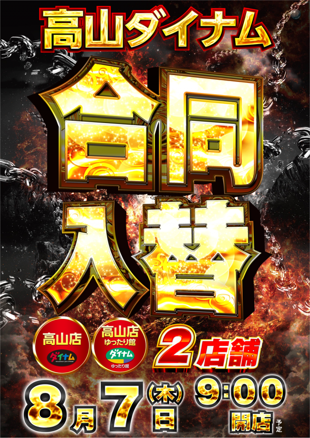 8/8(金)岐阜ダイナム14店舗 全店9:30開店