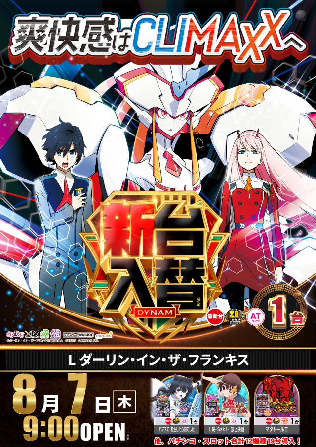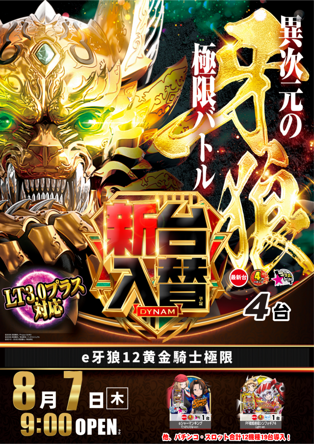 8/7(木)新台入替 パチンコ・スロット合計19台導入