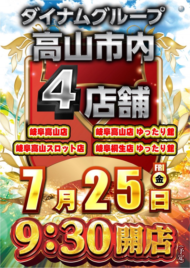 7/28(月)高山4店舗合同新景品入荷9:00開店予定