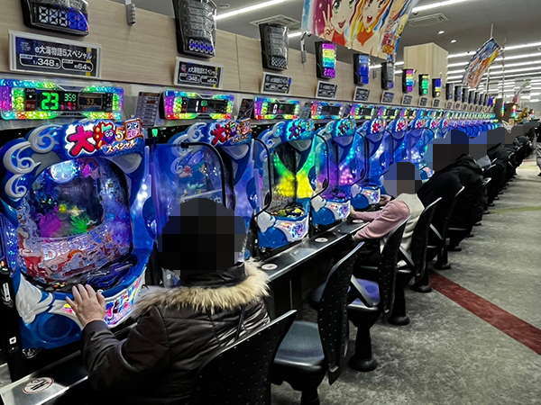 店内には老若男女を問わずプレイヤーが集合。パチンコ・パチスロの各シマから活気が感じられた。