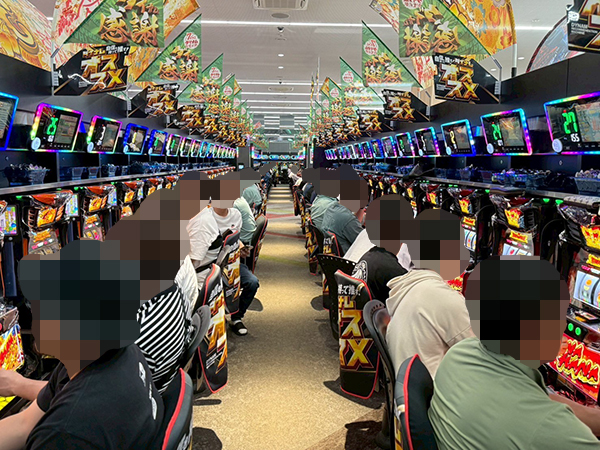 取材時は既に多くのプレイヤーであふれており、パチンコ・パチスロを問わず楽しげな表情でいっぱいだった。