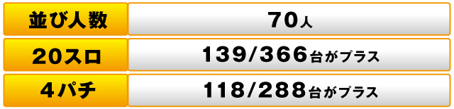 パチスロ全体では、366台中139台がプラスで、トータルの差枚数もプラスを達成した。