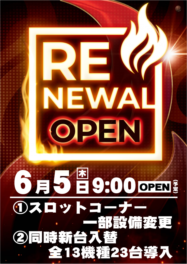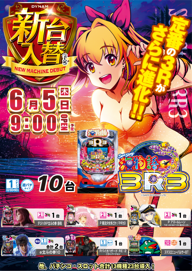 5/8(木)新台入替 パチンコ・スロット合計8台導入