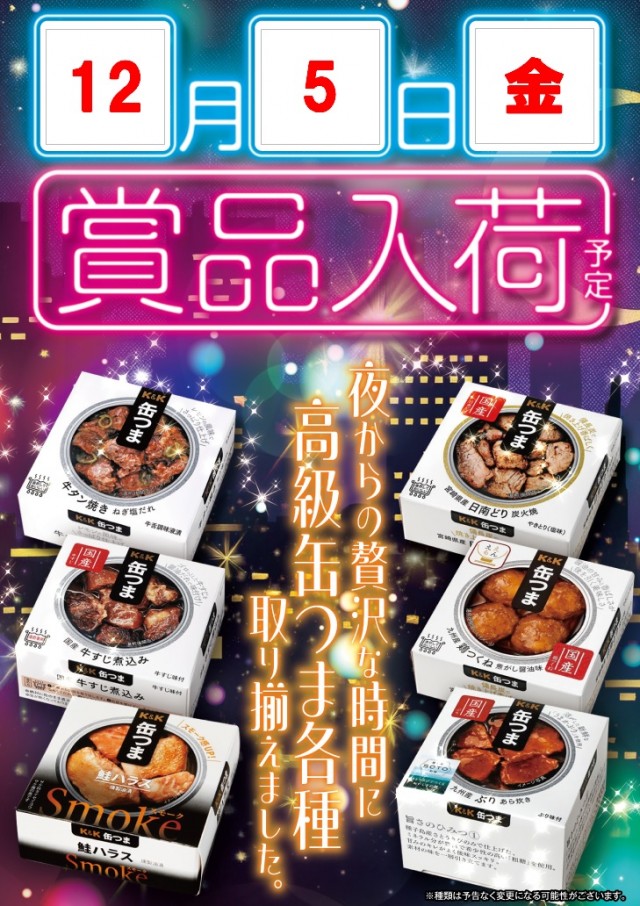 会員様こんばんは。明日は「缶つま」入荷予定です😊😊😊