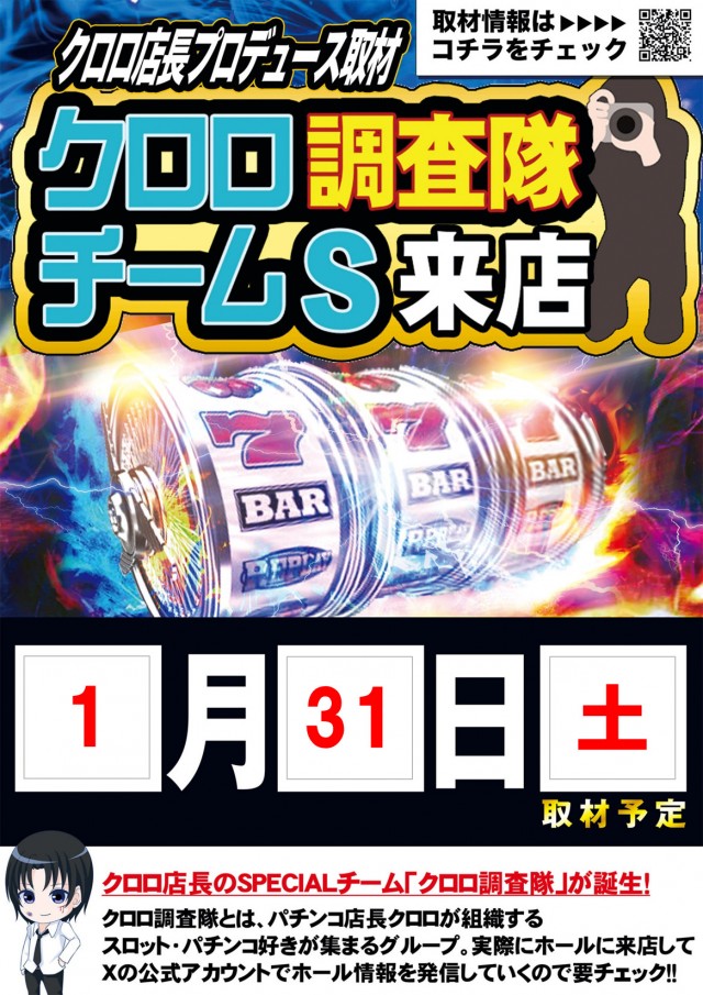 今月も本日でラスト!「クロロ調査隊チームS」来店取材予定💥💥
