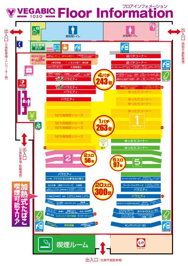 パチンコ:506台 スロット:454台 総設置台数:960台