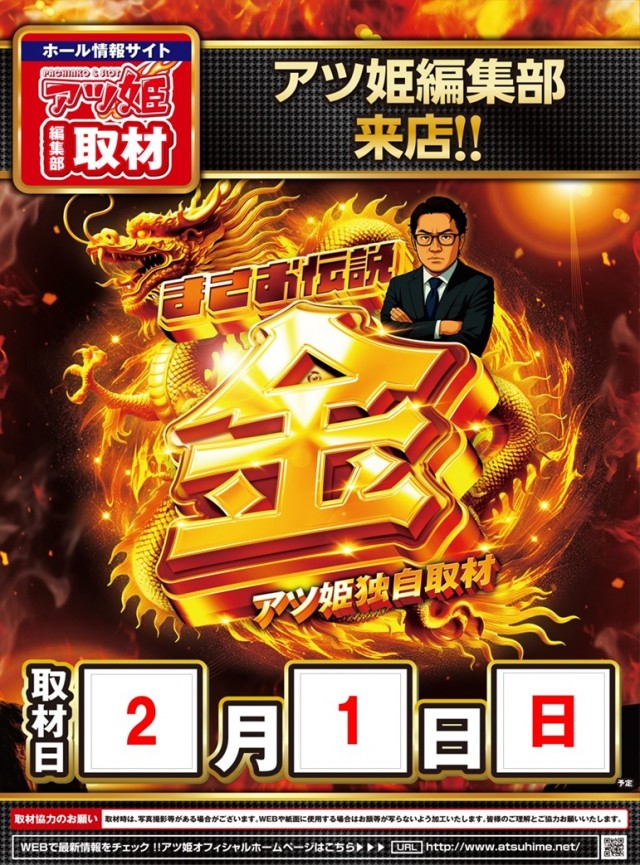 本日「まどぴー」さん来店&アツ姫「まさお伝説 金」開催予定😍