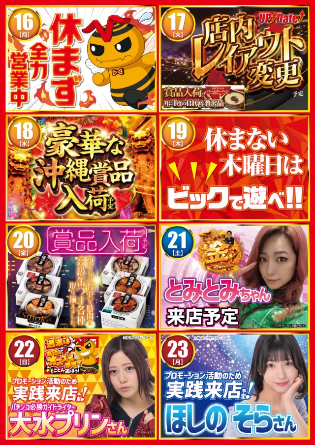 本日19日「休まない木曜日はビックで遊べ!!」😎
