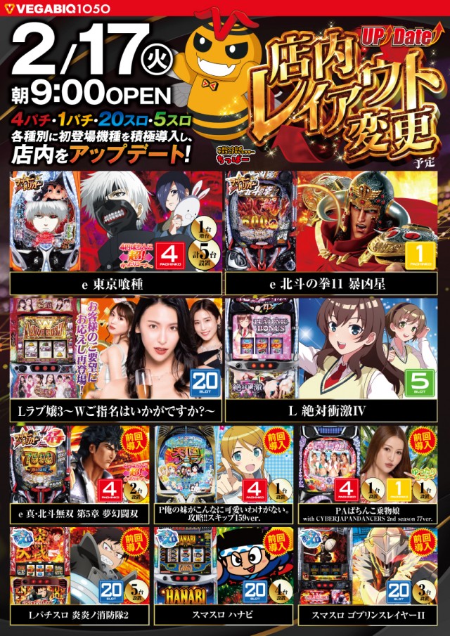 各種別に初登場の機種を導入し店内をアップデート!!