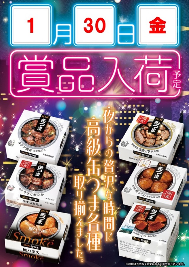 今月も残り僅か!本日は「缶つま」入荷予定です😊😊😊