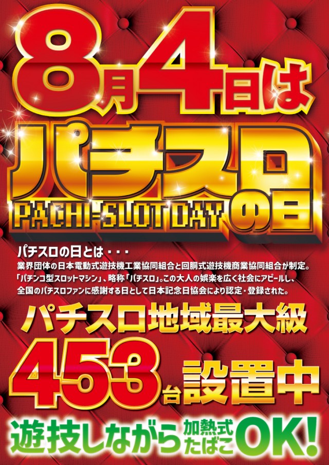 会員様おはようございます。本日8月4日は「パチスロの日」💥💥