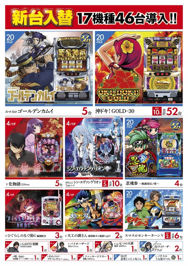 4月10日(水)新台入替初日☆17機種46台導入☆