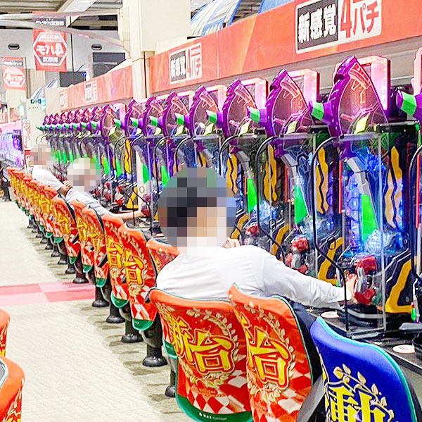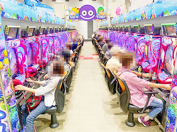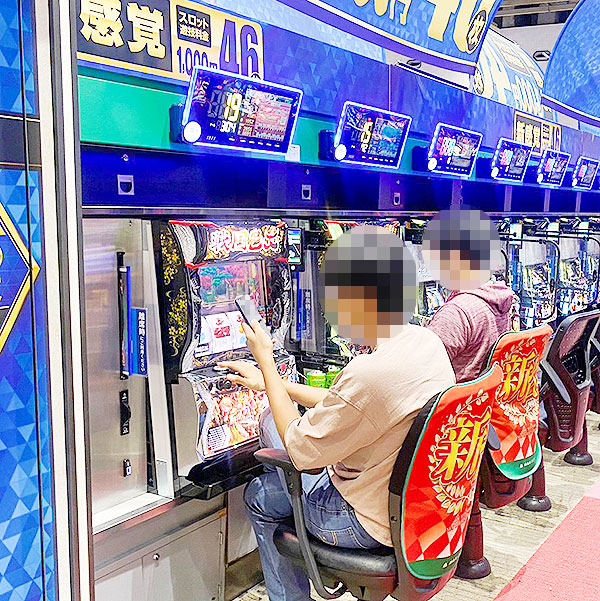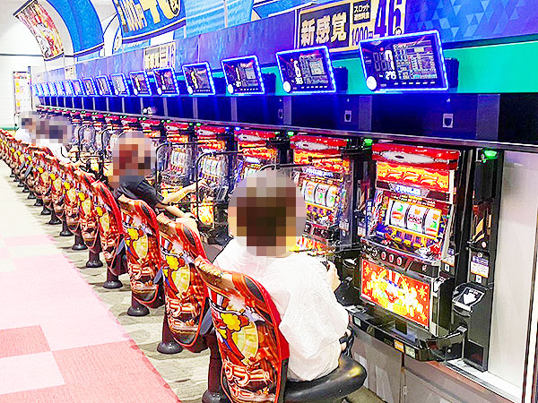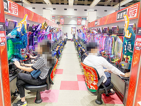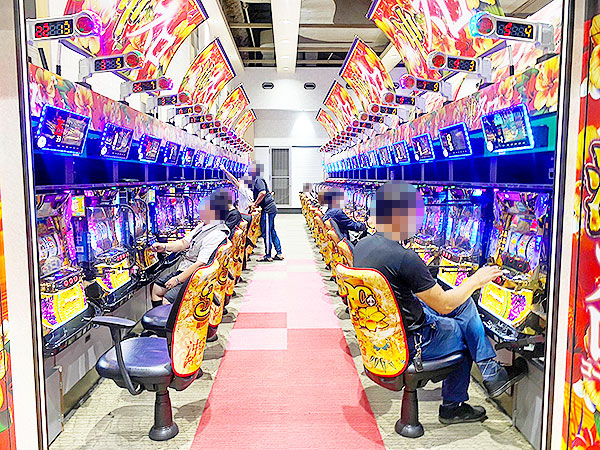 取材時は多くのプレイヤーが来店。パチンコ・パチスロともに、様々な機種が支持を得ていた。