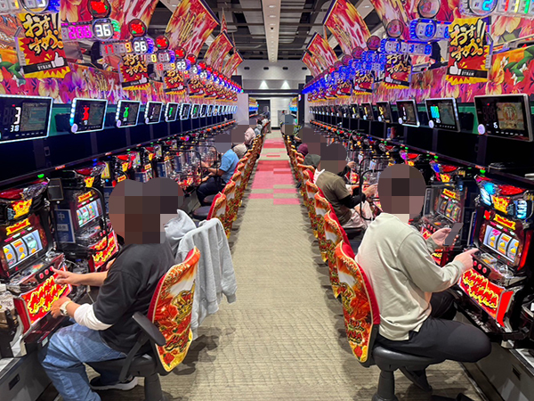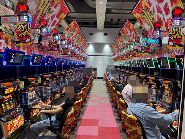 5.435円パチスロの支持も厚く、様々な機種で楽しそうにレバーを叩くプレイヤーが見られた。