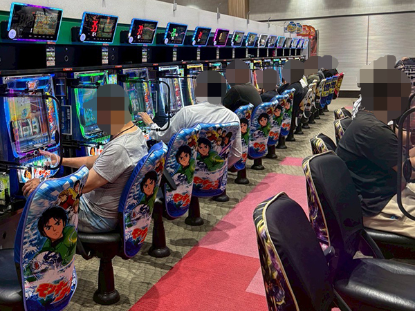 15時半ごろの4円パチンコでは「eフィーバー炎炎ノ消防隊2 紅丸ver.」や「e東京リベンジャーズ」で好調なプレイヤーが多数見受けられ、時折見せる嬉しそうな表情が印象に残っている。
