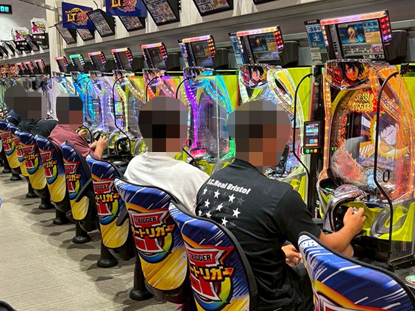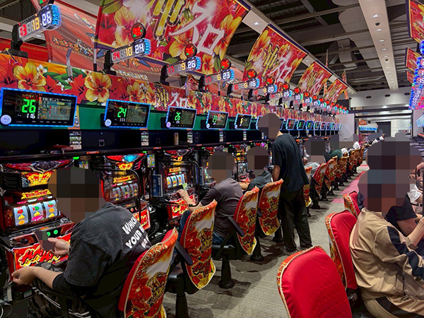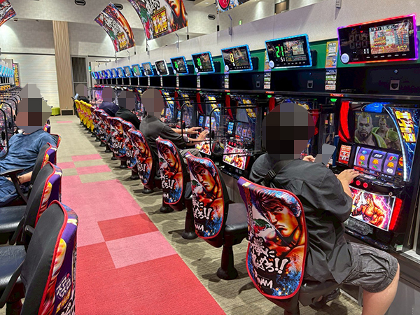 取材時は多くのプレイヤーが来店。パチンコ・パチスロともに、様々な機種が支持を得ていた。