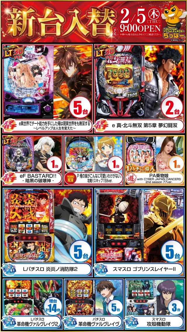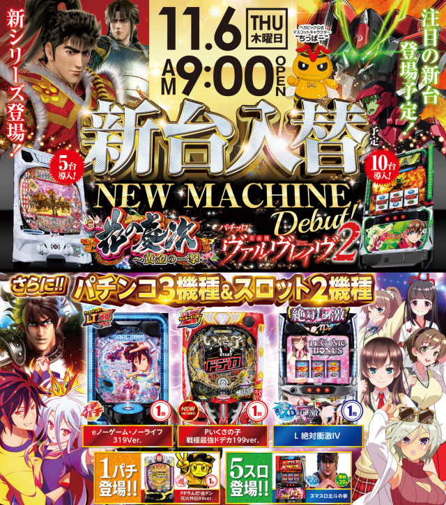 本日は、新台入替初日❗ 朝9時オープンです😆