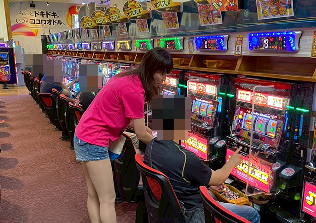 各機種をチェックしながら、プレイヤーたちとコミュニケーションをとっていた良子ちゃん。