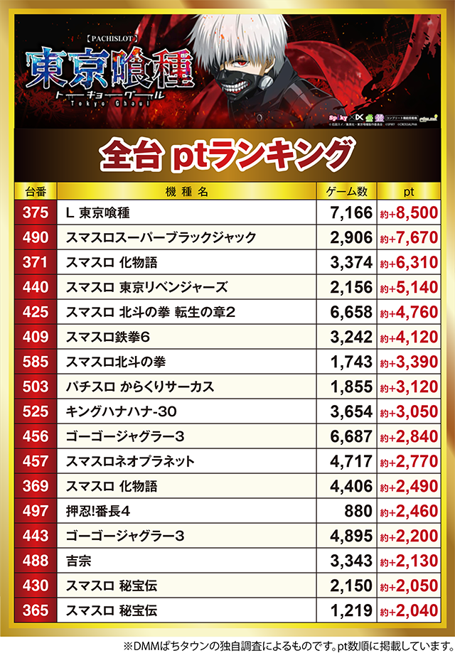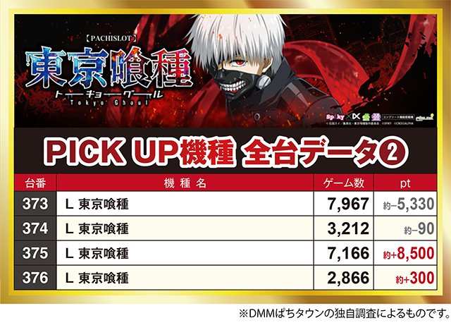 「L 東京喰種」の375番台が約+8,500pt、376番台もプラス!!
