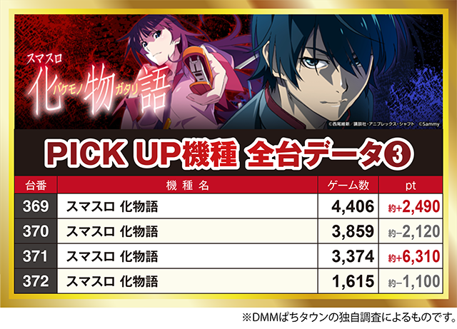 「スマスロ 化物語」では、371番台が約+6,300ptオーバー!