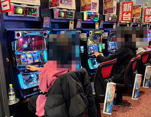 4台中3台が埋まっていた「スマスロ バイオハザード:ヴェンデッタ」にて、プレイヤーの表情がとくに明るい台を発見。