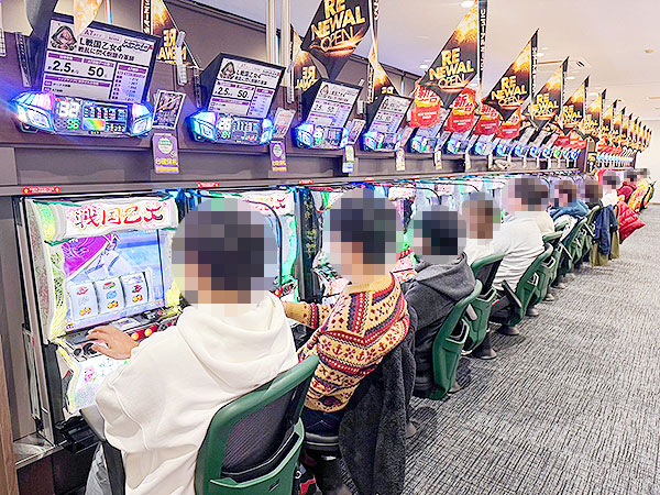 100円/90玉パチンコは「スマパチ シン・エヴァンゲリオン Type カヲル」や「新世紀エヴァンゲリオン〜未来への咆哮〜」、さらには海物語シリーズなど、機種を問わず高稼働。空き台が見当たらないほどの盛況ぶりで、シマ全体が明るい雰囲気に包まれていた。